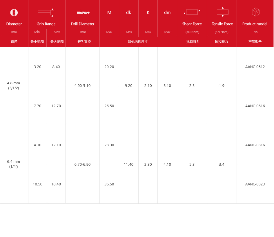 Now-Lock CSK Head Blind Rivet(Aluminum)AANC