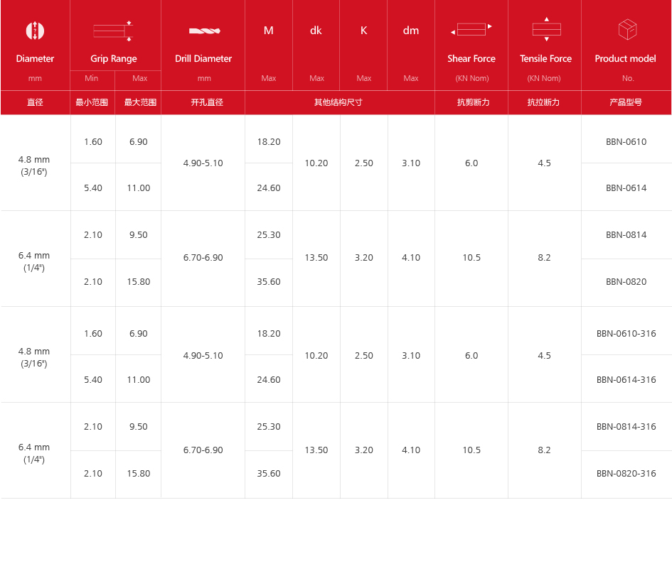 內鎖圓頭拉絲鉚釘(全不銹鋼)BBN